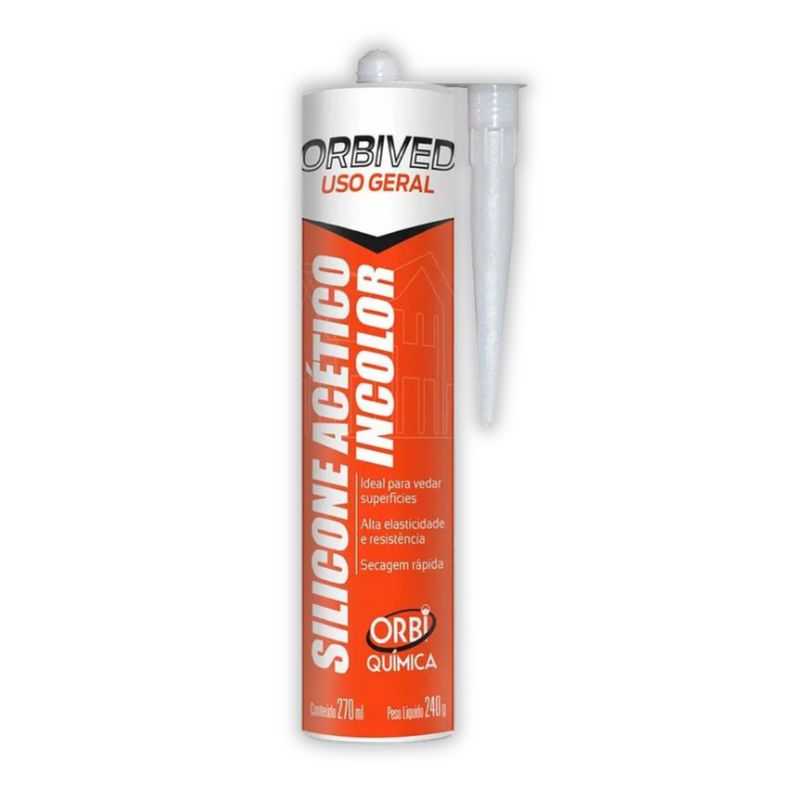 :1: O Silicone acético da OrbiQuimica é ideal para reparar uma diversidade de materiais como alumínio,vidro, calhas, superfícies vitrificadas, fibras de vidro, madeira e cerâmica e outros.